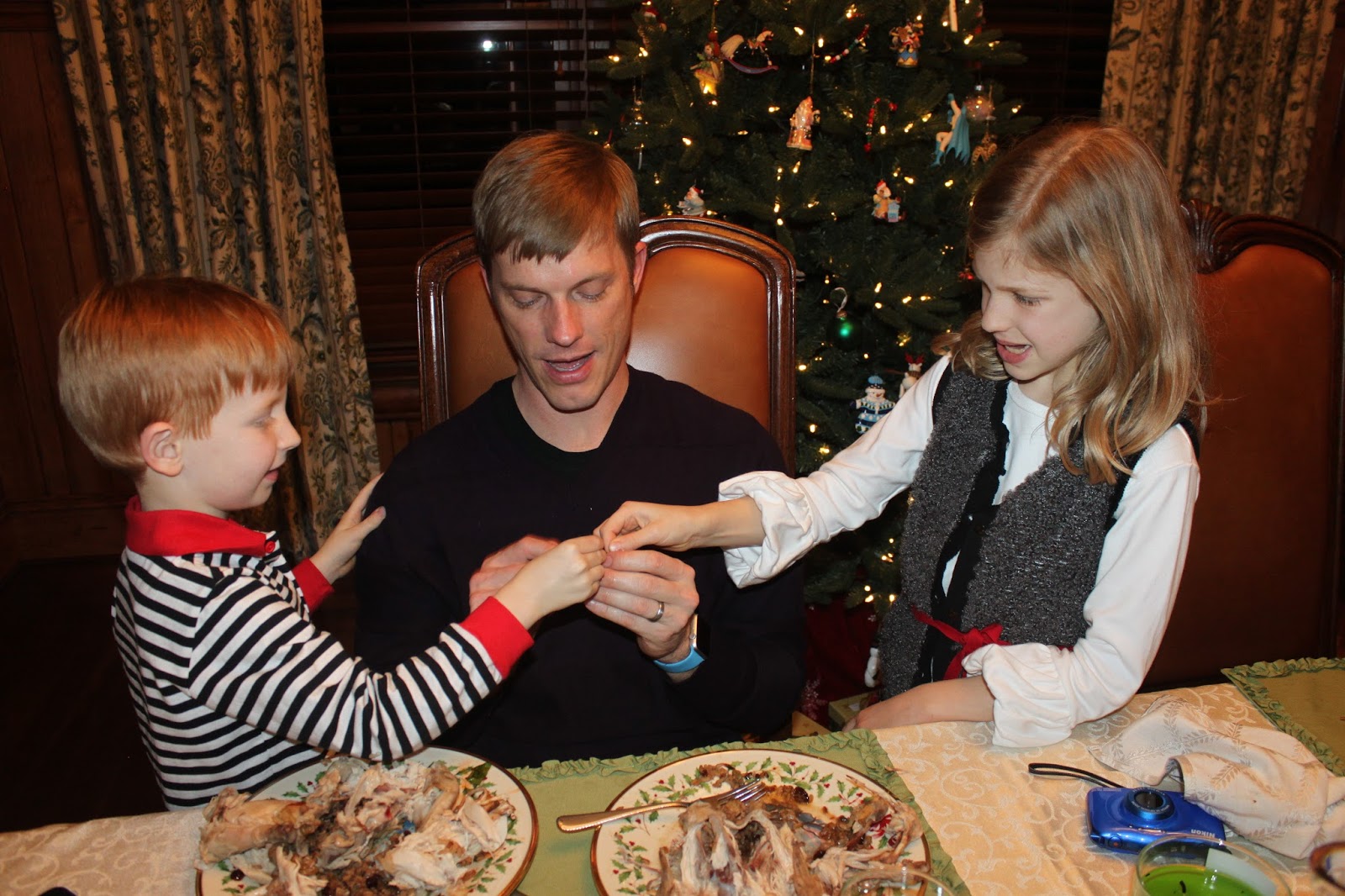 We attended the 4:00 Christmas Eve candlelight service, stopped by a friend's house for some Christmas cheer, and finally made it back home to prepare our annual Christmas Eve dinner.